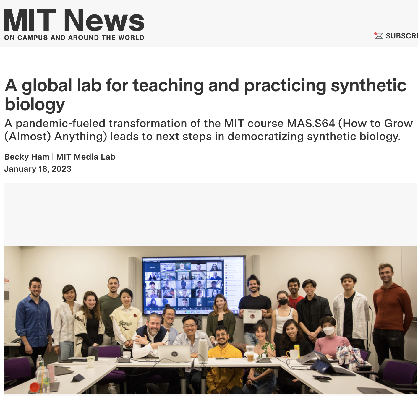 “A global lab for teaching and practicing synthetic biology,” MIT News, January 28, 2023 | Link